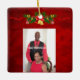 at christmass as a hanging decration for the chritmass tree.. its white porcline or cramic but very well made with added photo on one side.. also has a lovley red bag to keep it in.. execlent printed text in bold and black stands out well aganst the blue background of the photo.
