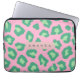 Personalized Pink and Green Leopard Print Laptop Sleeve