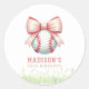 Personalized Pink Baseball Bow Girl Birthday Classic Round Sticker