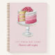 A personalized whimsical watercolor cake recipe notebook with a scrumptious looking cake and the phrase: let them eat cake, on a pink background. A great gift for an avid cake maker.