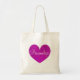 Personalized pink glitter love heart tote bag. Cute faux glittery heart design tote bag for women and girls. Elegant typography for custom text, monogram or name. Stylish print for bride and bridesmaids at bachelorette, wedding party or bridal shower.
