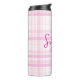 Cute pink plaid thermal tumbler with a custom name. Perfect for hot and cold drinks on the go with an aesthetic preppy style.