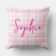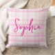 Cute personalized throw pillow with a soft pink plaid background and custom name in stylish script. Perfect for girly bedrooms, dorm rooms, and aesthetic home decor.