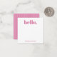 Personalized stationery enclosure notecard with a green gingham pattern in notes of dark deep and vibrant rose pink and bubble gum pink with the sentimental words "hello". Tuck it into a flower bouquet or meaningful gift. These minimal flower shop inspired enclosure cards bring a retro kitchen vibe to your most thoughtful moments.