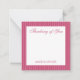 Personalized stationery enclosure notecard with a pink pin stripe pattern in notes of dark deep and vibrant rose pink and bubble gum pink with the sentimental words "Thinking of You". Tuck it into a flower bouquet or meaningful gift. These minimal flower shop inspired enclosure cards bring a retro kitchen vibe to your most thoughtful moments.