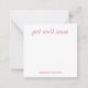Personalized stationery enclosure notecard with a pink gingham pattern in notes of dark deep and vibrant rose pink bubble gum and white with the sentimental words "get well soon". Tuck it into a flower bouquet or meaningful gift. These minimal flower shop inspired enclosure cards bring a retro kitchen vibe to your most thoughtful moments.
