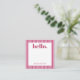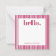 Personalized stationery enclosure notecard with a pink pin stripe pattern in notes of dark deep and vibrant rose pink bubble gum and white with the sentimental words "hello". Tuck it into a flower bouquet or meaningful gift. These minimal flower shop inspired enclosure cards bring a retro kitchen vibe to your most thoughtful moments.