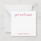Personalized stationery enclosure notecard with a pink pin stripe pattern in notes of dark deep and vibrant rose pink bubble gum and white with the sentimental words "get well soon". Tuck it into a flower bouquet or meaningful gift. These minimal flower shop inspired enclosure cards bring a retro kitchen vibe to your most thoughtful moments.