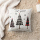 Add cozy charm to your holiday home with this personalized plaid Christmas tree pillow. Featuring a hand-painted trio of festive trees in red and black plaid, scattered snowflakes, and space to customize with your family name, this rustic farmhouse pillow brings warm winter cheer to any room.