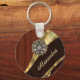 Personalized pretty faux mahogany wood key ring