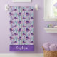 This nautical watercolor tropical fish bath towel design is complete with a seamless pattern of purple angelfish as well as pretty pastel purple background color and a place to add your name.