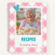 This charming personalized recipe notebook is perfect for home cooks, bakers, and food lovers who enjoy collecting their favorite recipes in one beautiful place. The soft pink gingham pattern paired with playful turquoise accents and a heart detail creates a warm, cozy, and modern design.