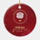 Celebrate your love with this exquisite Red & Gold Romance Ceramic Ornament. Featuring a luxurious gold-style script on a rich ruby red background, this ornament is beautifully decorated with elegant white roses, shimmering stars, and delicate hearts. Personalize it with your names or a special year to create a timeless Valentine's Day keepsake that can be cherished for years to come. Perfect as a romantic gift or a unique holiday accent