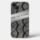 This manly black and silver rubber tire tread pattern Case-Mate Barely There iPad mini Retina case has a FAUX metallic silver look band with template text for you to add your company name, monogram, initials, name or other text to. If you need assistance, email niteowlstudio@gmail.com.