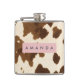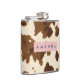 Personalized Rustic Brown Cowhide Print Hip Flask