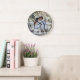 Celebrate your timeless love with this beautiful personalized photo clock, a perfect keepsake for weddings, anniversaries, or a new home. The rustic-inspired design features a charming photo of a newlywed couple in a natural setting, complemented by classic Roman numerals on a round face. Easily customize it by uploading your photo. Select “Personalize this design” to upload your photo. Note that the default photo filter creates a subtle vignette. If this blending option doesn’t work with your photo, select “Edit using the design tool” to remove or adjust the photo filter. You can also use Zazzle’s design tool to customize the photo placement, adjust the colors of the Roman numerals, or even add the couple’s names and a significant date. This will create a truly unique gift.