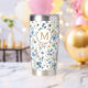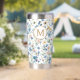 This personalized thermal tumbler features a delicate pattern of wildflowers paired with a classic monogram initial. Soft pastel florals and greenery create a timeless botanical look. The centered initial adds an elegant individual touch while maintaining balance and clarity against the floral background. A beautiful choice for those who love floral design, rustic aesthetics, and customized everyday essentials, the thermal tumbler makes a charming and useful gift for a birthday or Mother's Day. Ideal for country picnics, relaxing in the garden and bringing a touch of nature with you on your travels.