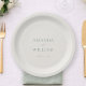 Create an elegant and cohesive table setting with these personalized sage green wedding paper plates. Featuring refined typography and a soft neutral palette, these plates are perfect for modern, minimalist, and garden weddings.