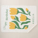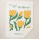 Celebrate a special birthday with this elegant, hand-drawn tulip design. Featuring a fresh scandi-minimalist style, these vibrant yellow florals and modern green typography bring a cheerful botanical vibe to any gift.