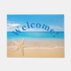 Bring a calming coastal vibe to your entryway with this personalized doormat featuring a tranquil beach scene: turquoise water, smooth golden sand, and a beige starfish in the corner. Add a custom name or keep the cheerful “Welcome!” text to greet guests with a touch of seaside charm.