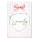 Add a touch of sweetness and elegance to your little one’s room with this personalized baby girl nursery print. Featuring a soft pink gingham background, a delicate ribbon bow, and a customizable name in a charming script font, this artwork makes the perfect finishing touch for any nursery, playroom, or bedroom.