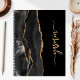 Personalize this elegant modern design with your name in vertical gold-colored signature handwriting script on a black background with a border of black watercolor agate trimmed with gold faux glitter. (To keep the swashes at the beginning and end of the name, replace only the letters, leaving the symbols in place.)