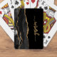 Personalize this elegant modern design with your name in vertical gold-colored signature handwriting script on a black background with a border of black watercolor agate trimmed with gold faux glitter. (To keep the swashes at the beginning and end of the name, replace only the letters, leaving the symbols in place.)