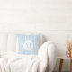 Simple, clean, pretty vertical pinstripe pastel blue throw pillow, personalized with your initial. Perfect for your bedroom, a dorm room, or a nursery.