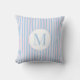 Simple, clean, pretty vertical pinstripe pastel blue and pink throw pillow, personalized with your initial. Perfect for your bedroom, a dorm room, or a nursery.monogram