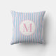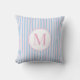 Simple, clean, pretty vertical pinstripe pastel blue and pink throw pillow, personalized with your initial. Perfect for your bedroom, a dorm room, or a nursery.