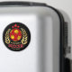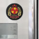 This round magnet is designed to add both personality and visual impact to refrigerators, lockers, and other metal surfaces. It features a bold central ball pattern in rich red and yellow tones, framed by elegant gold laurel branches and accented with star elements for a classic achievement-inspired look. The deep black background enhances contrast and makes the artwork stand out clearly. The magnet offers a customizable text area, allowing it to be personalized for individuals or teams, making it a thoughtful keepsake that combines decorative style with everyday practicality.