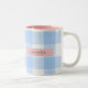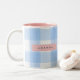 Personalized Soft Pastel Sky Blue Gingham Two-Tone Coffee Mug