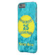 PERSONALIZED Softball iPhone 6 Cases Turquoise Stitches on Yellow Softball with her NAME and JERSEY NUMBER typed into Text Boxes on your right below "Edit this design template". Cool glassy like pool of tropical water background for the most Unique Softball iPhone Case around. CALL Linda for HELP or Any CHANGES to my design: 239-949-9090.