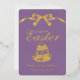 Celebrate the joy of the season with this personalized gold foil Happy Easter card. Featuring elegant gold foil lettering, a delicate ribbon bow design, and a charming Easter egg, this card is printed on a vintage lavender purple background for a timeless spring look. Personalize the front with your family name or greeting, and add a heartfelt message on the back to create a meaningful keepsake your loved ones will cherish. The real gold foil detailing adds a luxurious touch, making this card perfect for those who appreciate classic elegance with a modern feel. Ideal for sending warm Easter wishes, this sophisticated non-photo Easter card is a beautiful way to share springtime joy with friends and family.
