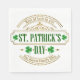 Personalized St. Patrick's Day I Luck of the Irish - Custom Name & Year - Luck of the Irish Gift. The design include: Text: The main text is "ST. PATRICK'S DAY" in large green letters. Above this, in a gold-colored arc, is "Best of luck to you". Below the main text, in another gold arc, is "The Hanna Family 20xx".