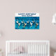 Easy-to-personalize birthday party banner featuring swimming pool and synchronized swimmers. Edit text to add name.