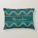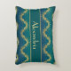 Luxe teal pillow featuring a metallic‑look gold Art Deco sunburst/arch pattern and an editable name band. Add your name or initial for a refined, Gatsby‑inspired accent that coordinates with matching blankets, mugs, tumblers, lamps, trays, and more.