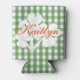 Personalize this cute, green gingham, single can cooler with three white clovers. See more designs like this at www.zazzle.com/LowCountry* (Plz, Use the asterisk! It saves funds in store, without costing you anything more!)