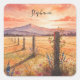 Add charm with this romantic sticker of a sunset rural landscape, showcasing pink, yellow, and blue wildflowers by a vine-covered fence, with purple mountains. Add your name or message for a cute, custom touch, perfect for nature fans.