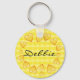 Cute keychain with a yellow wreath on a yellow tiny hearts pattern. Please feel free to personalize it with your own name.
