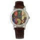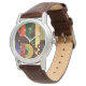 Perspective men's, womens, and kid's eWatch watches with white numbers. Perspective is an abstract design created by Vexenwraith and consists of multi-coloured shapes on a brown background.