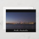 Postcard featuring a photo of the Perth city skyline at night, over the Swan River, Western Australia.