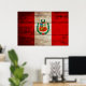 Peru Flag on Old Wood Grain Poster