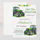 Pesonal Modern Green Tractor Birthday Invitation