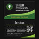 Professional QR code business card for pest control and extermination service providers. Designed so customers can quickly scan to save your contact details, request a quote, or schedule pest treatment online. Ideal for residential service calls, commercial accounts, referrals, and local marketing. Editable text and QR destination. Clean print-ready layout.