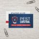 The back includes space for your name, job title, contact info, and a neatly arranged list of pest control services - from insects and rodents to termite treatment and eco-safe plans.