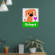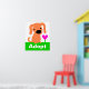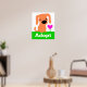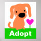 Cute poster for pet adoption. Orange dog with pink heart flower and the work Adopt below.