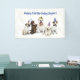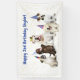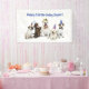 Enjoy this pet dog birthday party design with dogs wearing party hats and gold confetti flying about. Template for the birthday wishes line with name and birthday number in blue text.