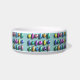This is a heavy, durable bowl decorated with Tibbies of many colors, the perfect size for hungry/thirsty Tibs. The design is interesting and printing clear.