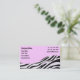 Pet Care Business Cards with picture of a zebra print and great text layout you can customise now! Stylish pet care card that makes a great template for a pet groomer, mobile pet groomer, pet sitter or dog grooming, obedience or training, kennel, or animal hospital.